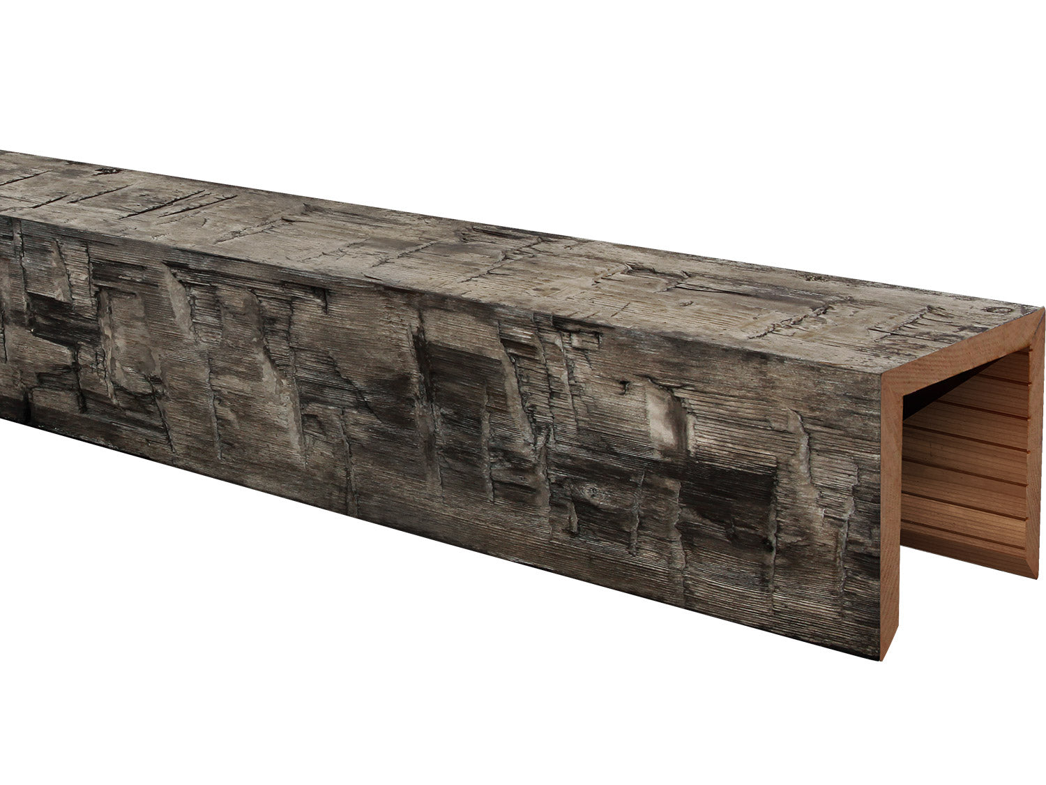 The beams’ wood undergoes a proprietary wood treatment process that results in a gorgeous, weathered color and makes it less prone to cracking, warping, checking and twisting. And unlike real reclaimed wood, these beams won’t have any insects hiding inside.