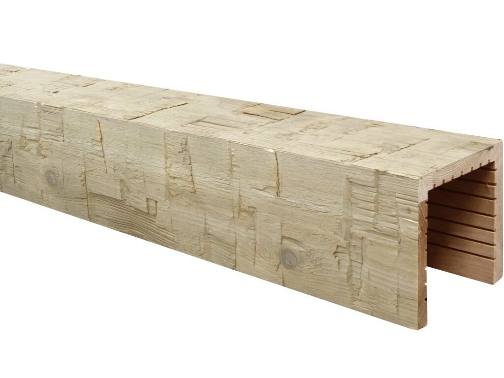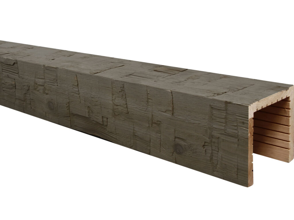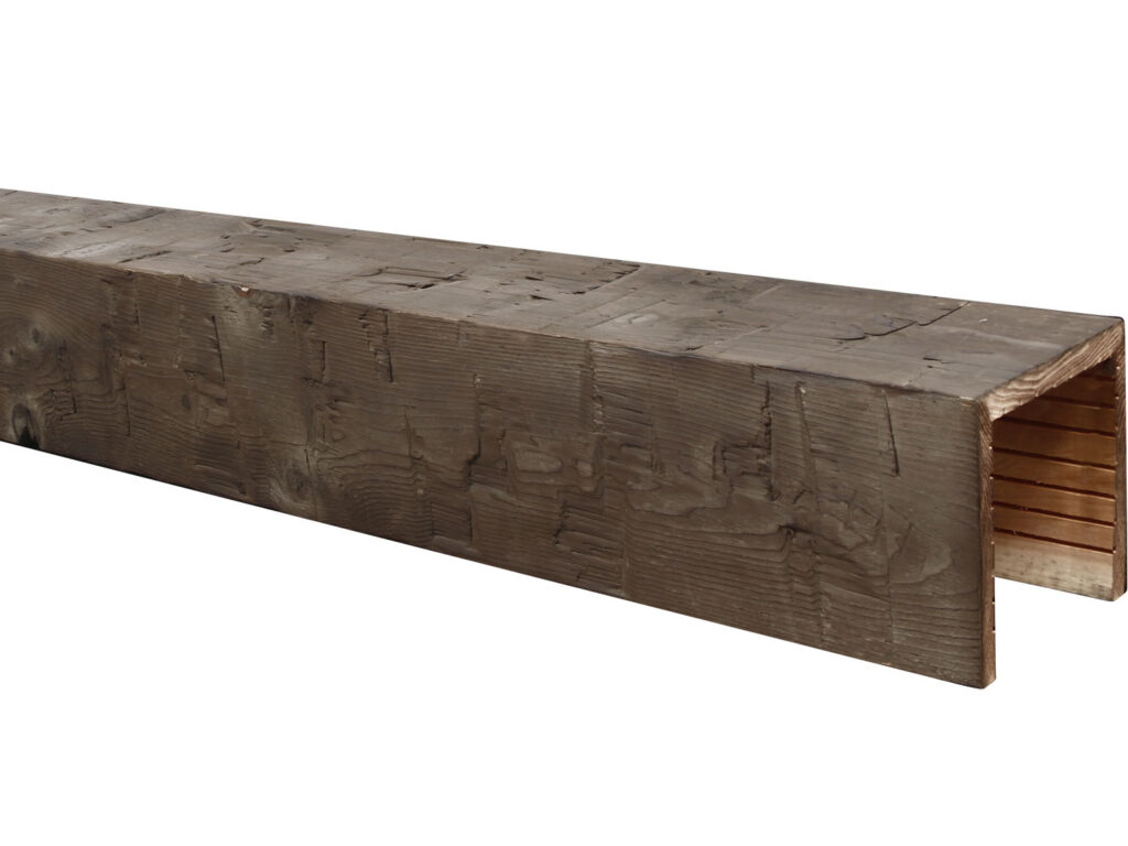Made from cedar, the wood is painstakingly finished with a proprietary treatment process that creates its natural weathered look and coloring. The treatment also gives the beams a better defense against warping, cracking, twisting and checking.